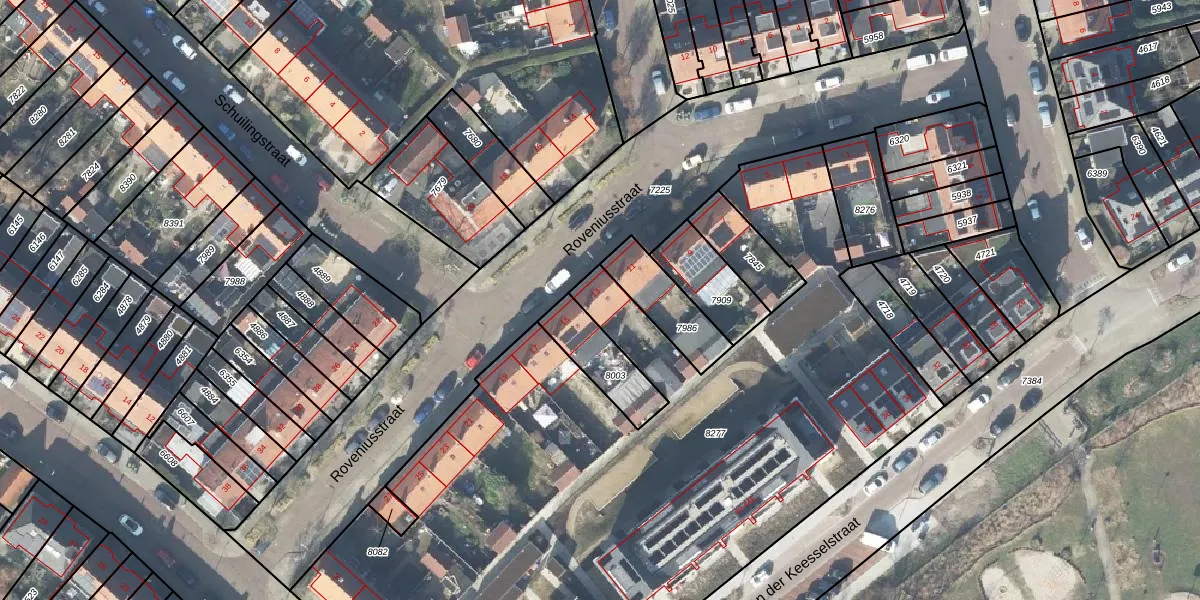 Het perceel waarop Roveniusstraat 13 staat heeft een oppervlakte van 4166 m². Dit is een zeer groot perceel. De perceeloppervlakte wordt geregistreerd door het Kadaster. Gedetailleerde informatie over de maten van dit perceel kunt u vinden in het rapport Kadastrale kaart met maatvoering van Roveniusstraat 13.
