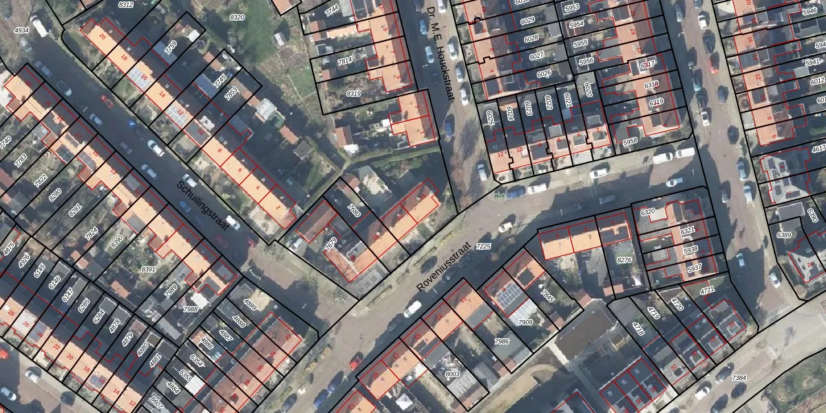 Het perceel waarop Roveniusstraat 14 staat heeft een oppervlakte van 3165 m². Dit is een zeer groot perceel. De perceeloppervlakte wordt geregistreerd door het Kadaster. Gedetailleerde informatie over de maten van dit perceel kunt u vinden in het rapport Kadastrale kaart met maatvoering van Roveniusstraat 14.