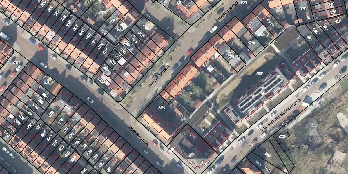 Het perceel waarop Roveniusstraat 25 staat heeft een oppervlakte van 4166 m². Dit is een zeer groot perceel. De perceeloppervlakte wordt geregistreerd door het Kadaster. Gedetailleerde informatie over de maten van dit perceel kunt u vinden in het rapport Kadastrale kaart met maatvoering van Roveniusstraat 25.