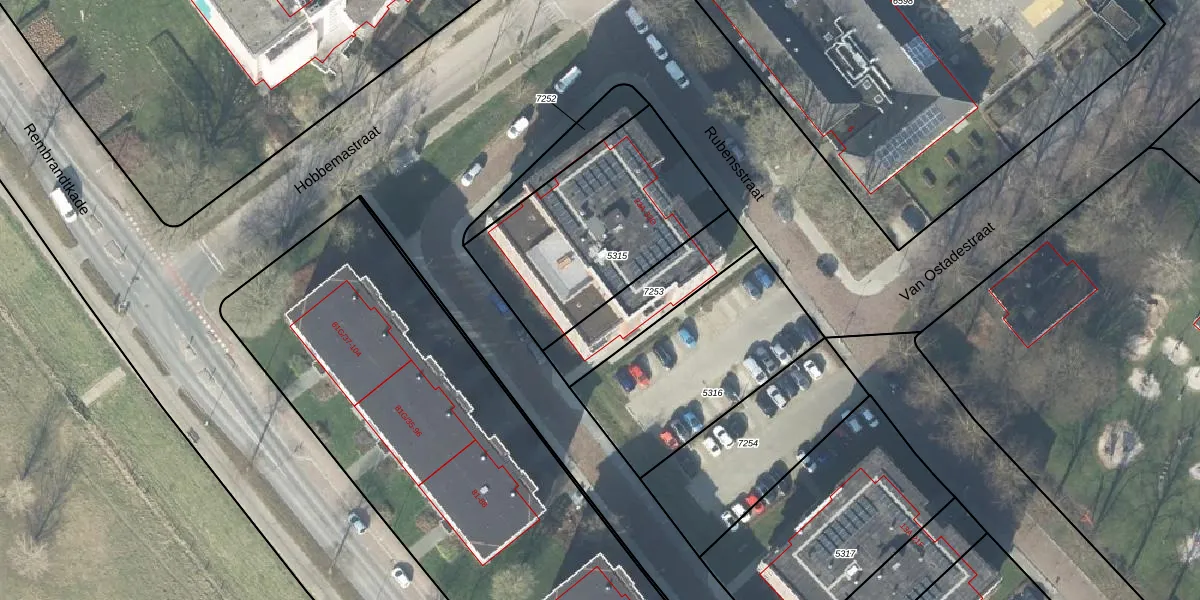 Het perceel waarop Rubensstraat 27-C staat heeft een oppervlakte van 853 m². Dit is een groot perceel. De perceeloppervlakte wordt geregistreerd door het Kadaster. Gedetailleerde informatie over de maten van dit perceel kunt u vinden in het rapport Kadastrale kaart met maatvoering van Rubensstraat 27-C.