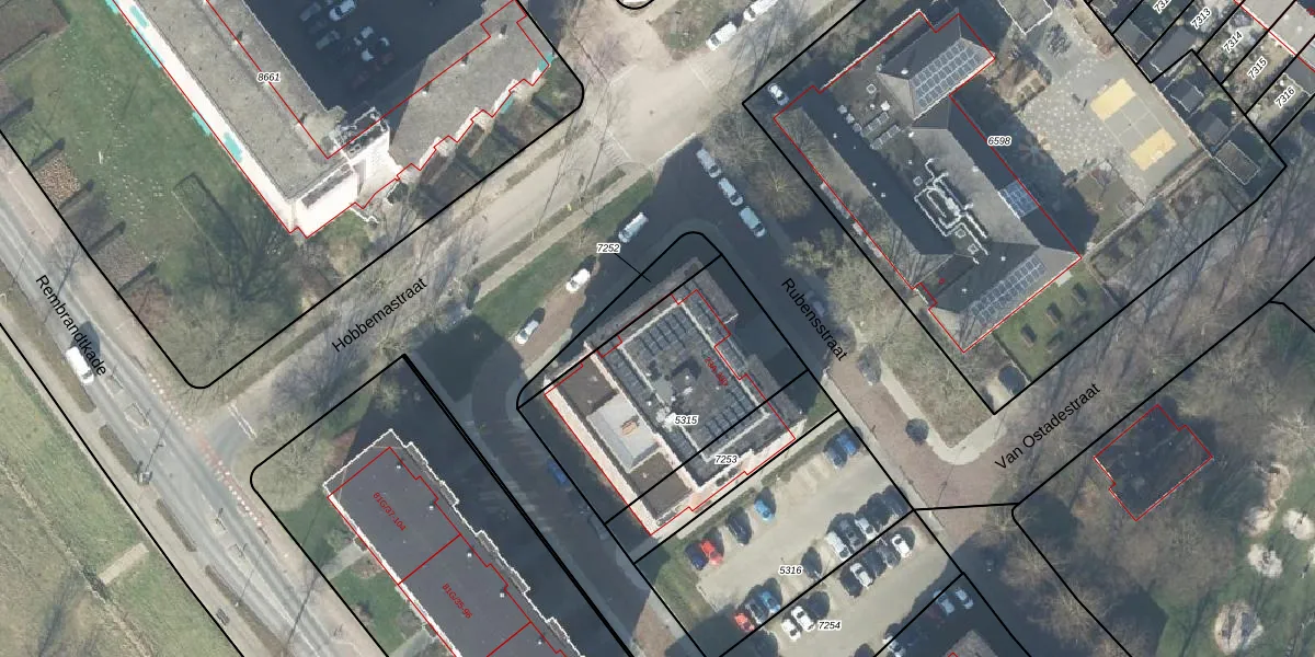 Het perceel waarop Rubensstraat 31-F staat heeft een oppervlakte van 853 m². Dit is een groot perceel. De perceeloppervlakte wordt geregistreerd door het Kadaster. Gedetailleerde informatie over de maten van dit perceel kunt u vinden in het rapport Kadastrale kaart met maatvoering van Rubensstraat 31-F.