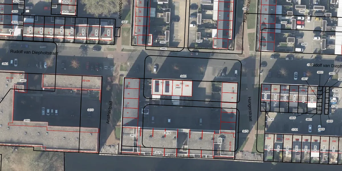 Het perceel waarop Rudolf van Diepholtstraat 182 staat heeft een oppervlakte van 635 m². Dit is een groot perceel. De perceeloppervlakte wordt geregistreerd door het Kadaster. Gedetailleerde informatie over de maten van dit perceel kunt u vinden in het rapport Kadastrale kaart met maatvoering van Rudolf van Diepholtstraat 182.