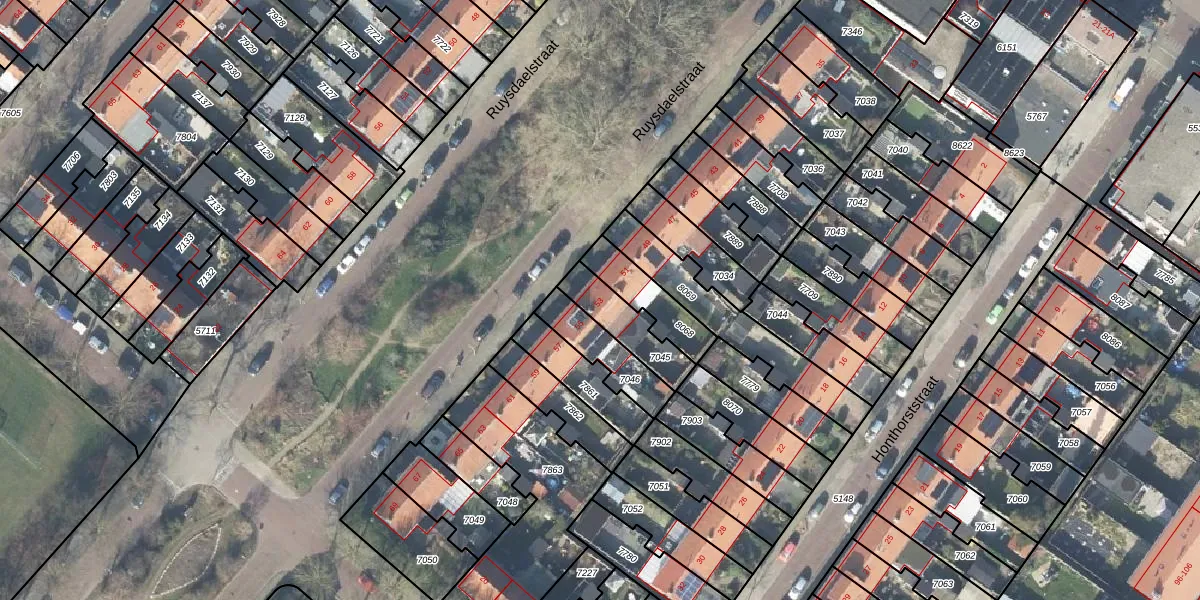 Het perceel waarop Ruysdaelstraat 53 staat heeft een oppervlakte van 151 m². Dit is een middelgroot perceel. De perceeloppervlakte wordt geregistreerd door het Kadaster. Gedetailleerde informatie over de maten van dit perceel kunt u vinden in het rapport Kadastrale kaart met maatvoering van Ruysdaelstraat 53.