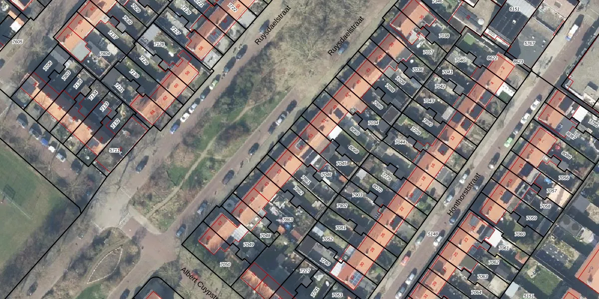Gebruik de zoekbalk of klik op een perceel voor informatie over de adressen binnen dit perceel.