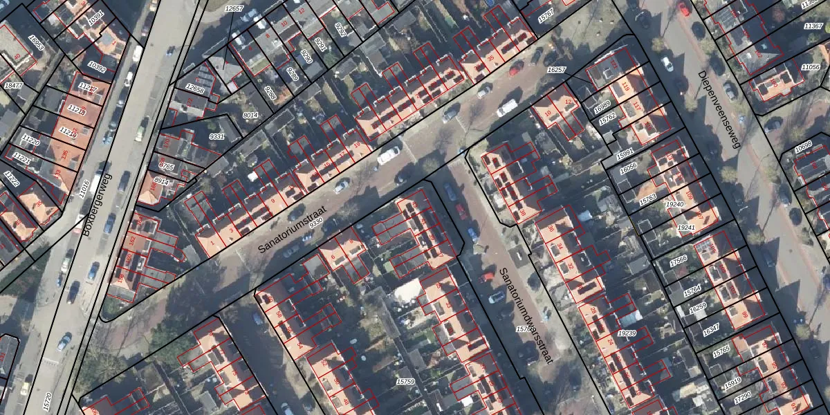 Het perceel waarop Sanatoriumdwarsstraat 43 staat heeft een oppervlakte van 5204 m². Dit is een zeer groot perceel. De perceeloppervlakte wordt geregistreerd door het Kadaster. Gedetailleerde informatie over de maten van dit perceel kunt u vinden in het rapport Kadastrale kaart met maatvoering van Sanatoriumdwarsstraat 43.
