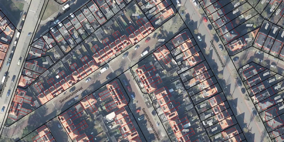 Het perceel waarop Sanatoriumdwarsstraat 44 staat heeft een oppervlakte van 3101 m². Dit is een zeer groot perceel. De perceeloppervlakte wordt geregistreerd door het Kadaster. Gedetailleerde informatie over de maten van dit perceel kunt u vinden in het rapport Kadastrale kaart met maatvoering van Sanatoriumdwarsstraat 44.