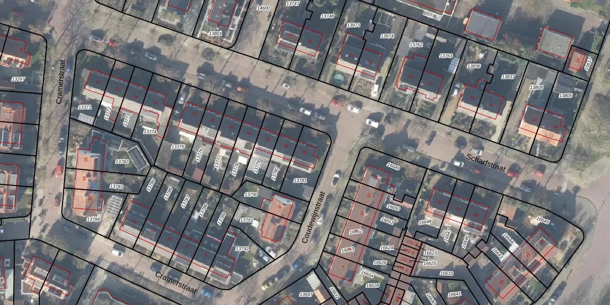 Het perceel waarop Scharfstraat 30 staat heeft een oppervlakte van 245 m². Dit is een middelgroot perceel. De perceeloppervlakte wordt geregistreerd door het Kadaster. Gedetailleerde informatie over de maten van dit perceel kunt u vinden in het rapport Kadastrale kaart met maatvoering van Scharfstraat 30.