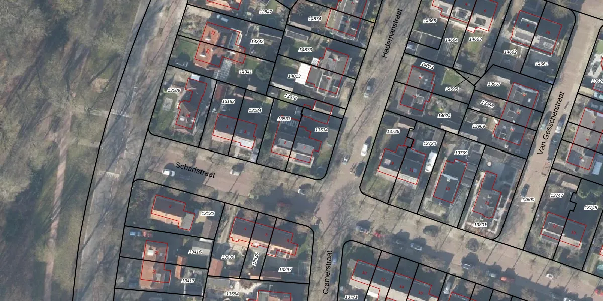Gebruik de zoekbalk of klik op een perceel voor informatie over de adressen binnen dit perceel.