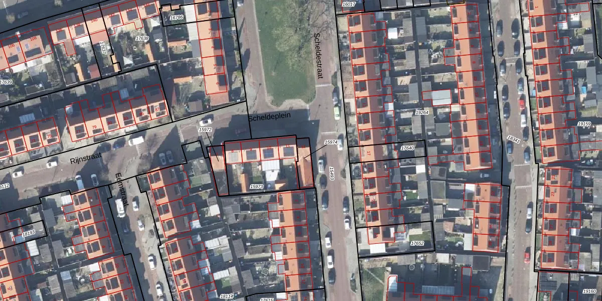Gebruik de zoekbalk of klik op een perceel voor informatie over de adressen binnen dit perceel.
