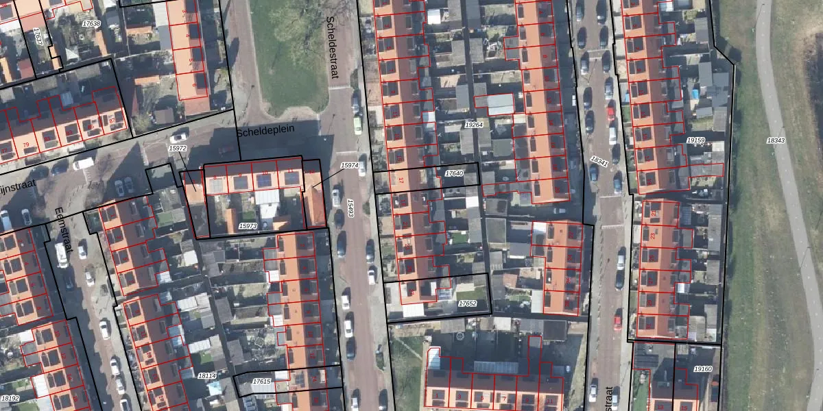 Het perceel waarop Scheldestraat 19 staat heeft een oppervlakte van 5402 m². Dit is een zeer groot perceel. De perceeloppervlakte wordt geregistreerd door het Kadaster. Gedetailleerde informatie over de maten van dit perceel kunt u vinden in het rapport Kadastrale kaart met maatvoering van Scheldestraat 19.