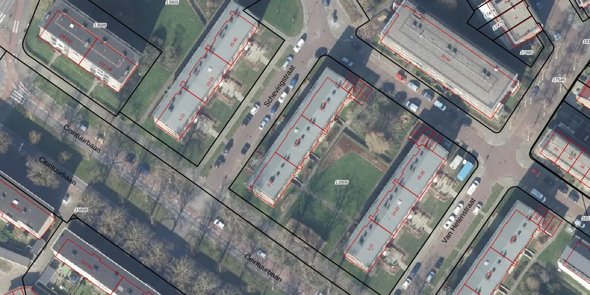 Schevingstraat 16 is gelegen op kadastraal perceel DVT00B13906. Deze kadastrale aanduiding is uniek en wordt gebruikt door het Kadaster om eigendomsrechten en andere zakelijke rechten vast te leggen. Het perceel maakt onderdeel uit van de kadastrale gemeente Deventer.