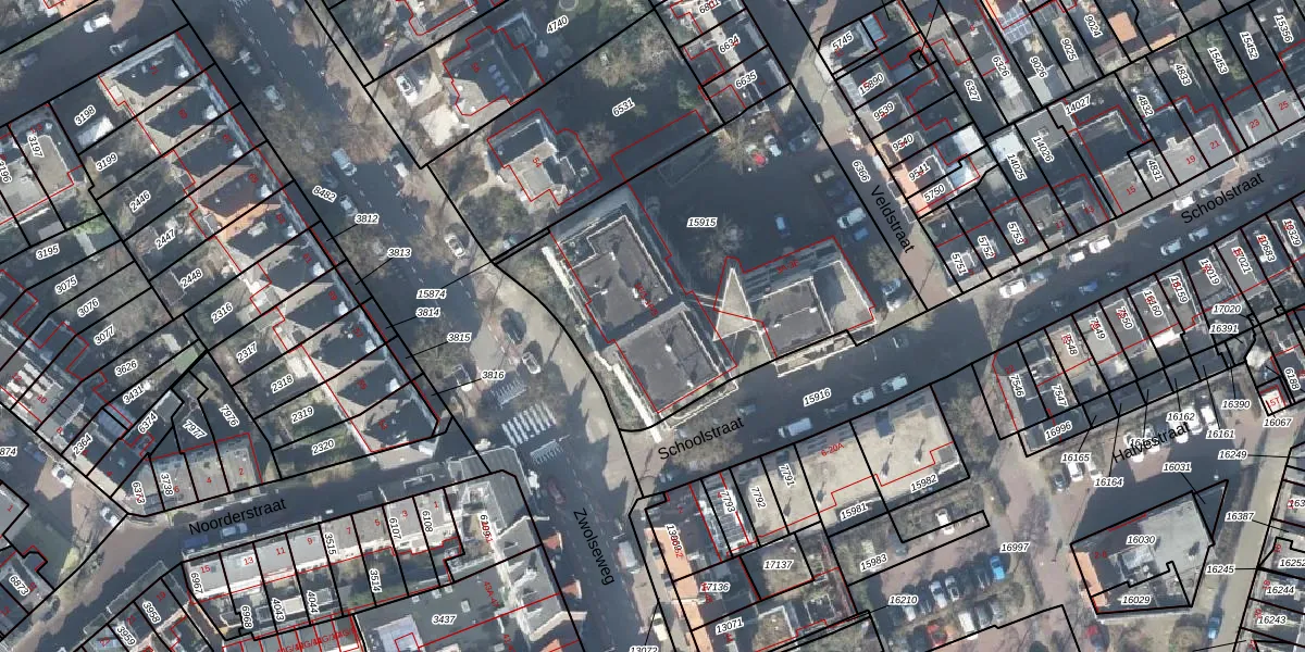 Schoolstraat 1-F-24 is gelegen op kadastraal perceel DVT00B15915. Deze kadastrale aanduiding is uniek en wordt gebruikt door het Kadaster om eigendomsrechten en andere zakelijke rechten vast te leggen. Het perceel maakt onderdeel uit van de kadastrale gemeente Deventer.