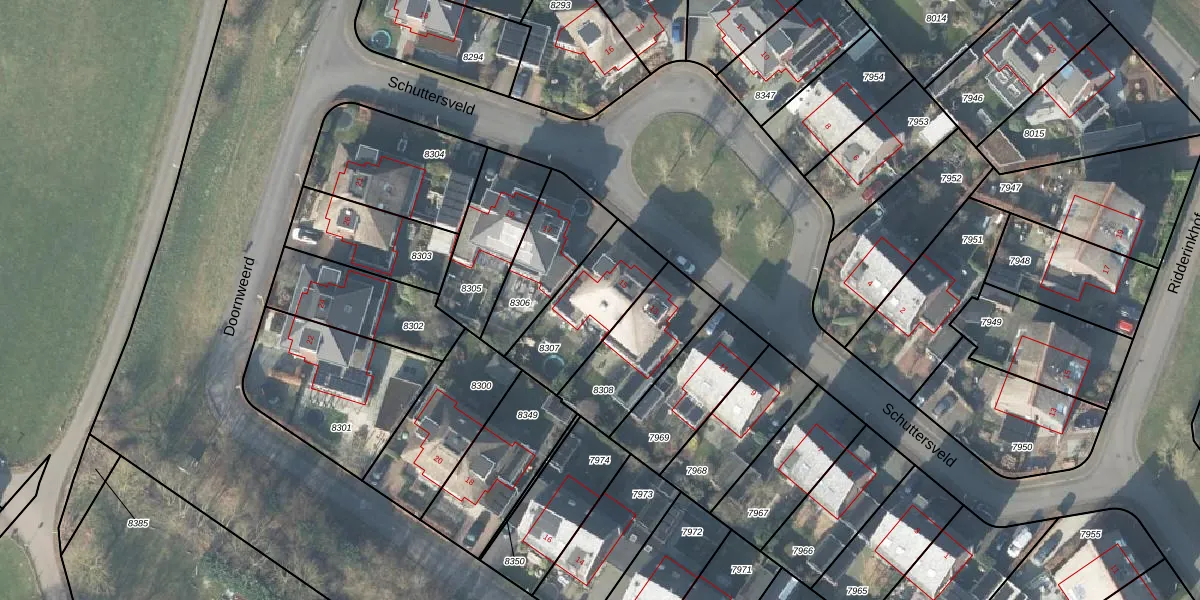 Het perceel waarop Schuttersveld 15 staat heeft een oppervlakte van 320 m². Dit is een groot perceel. De perceeloppervlakte wordt geregistreerd door het Kadaster. Gedetailleerde informatie over de maten van dit perceel kunt u vinden in het rapport Kadastrale kaart met maatvoering van Schuttersveld 15.