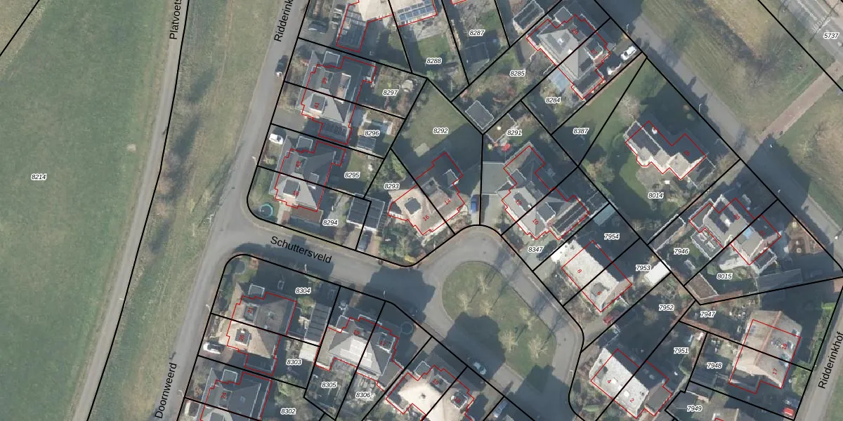 Schuttersveld 16 is gelegen op kadastraal perceel DVT00A8293. Deze kadastrale aanduiding is uniek en wordt gebruikt door het Kadaster om eigendomsrechten en andere zakelijke rechten vast te leggen. Het perceel maakt onderdeel uit van de kadastrale gemeente Deventer.