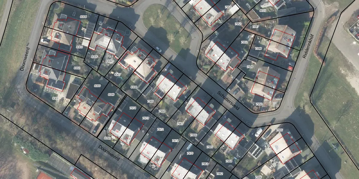 Het perceel waarop Schuttersveld 9 staat heeft een oppervlakte van 297 m². Dit is een middelgroot perceel. De perceeloppervlakte wordt geregistreerd door het Kadaster. Gedetailleerde informatie over de maten van dit perceel kunt u vinden in het rapport Kadastrale kaart met maatvoering van Schuttersveld 9.