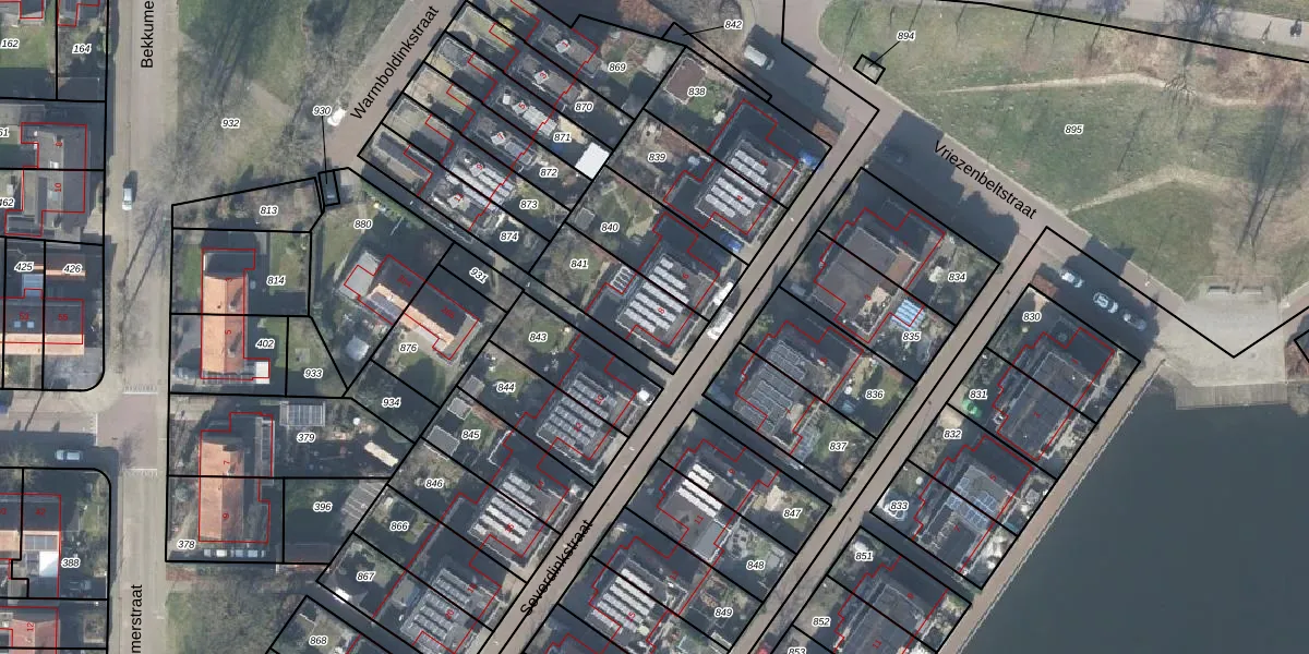Gebruik de zoekbalk of klik op een perceel voor informatie over de adressen binnen dit perceel.