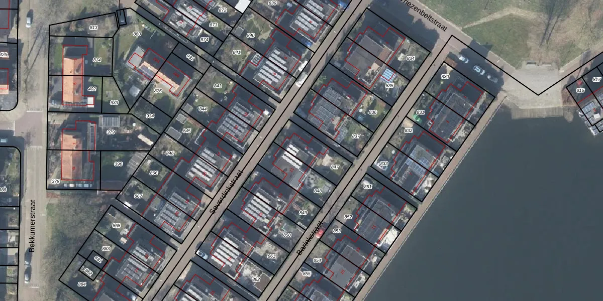 Gebruik de zoekbalk of klik op een perceel voor informatie over de adressen binnen dit perceel.