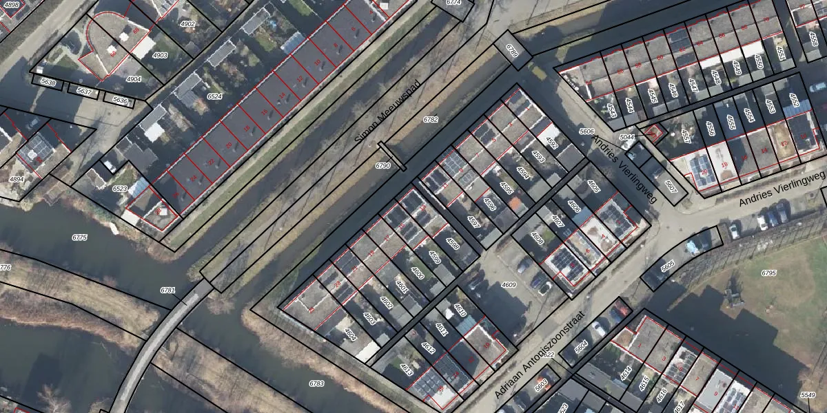 Gebruik de zoekbalk of klik op een perceel voor informatie over de adressen binnen dit perceel.