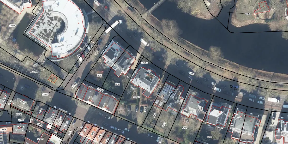 Het perceel waarop Singel 12-A staat heeft een oppervlakte van 981 m². Dit is een groot perceel. De perceeloppervlakte wordt geregistreerd door het Kadaster. Gedetailleerde informatie over de maten van dit perceel kunt u vinden in het rapport Kadastrale kaart met maatvoering van Singel 12-A.