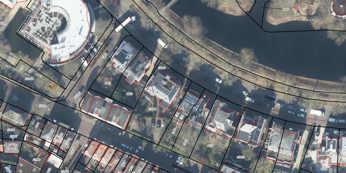 Het perceel waarop Singel 12-C staat heeft een oppervlakte van 981 m². Dit is een groot perceel. De perceeloppervlakte wordt geregistreerd door het Kadaster. Gedetailleerde informatie over de maten van dit perceel kunt u vinden in het rapport Kadastrale kaart met maatvoering van Singel 12-C.