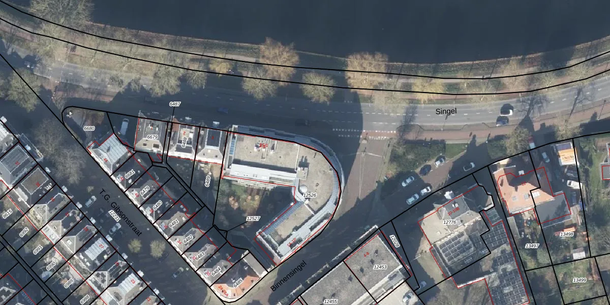 Het perceel waarop Singel 8 staat heeft een oppervlakte van 1330 m². Dit is een zeer groot perceel. De perceeloppervlakte wordt geregistreerd door het Kadaster. Gedetailleerde informatie over de maten van dit perceel kunt u vinden in het rapport Kadastrale kaart met maatvoering van Singel 8.
