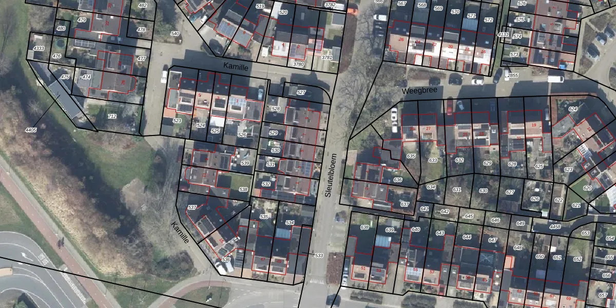 Gebruik de zoekbalk of klik op een perceel voor informatie over de adressen binnen dit perceel.