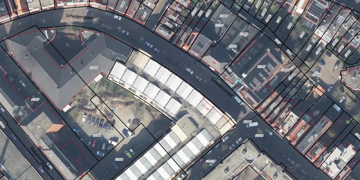 Het perceel waarop Smedenstraat 209 staat heeft een oppervlakte van 1870 m². Dit is een zeer groot perceel. De perceeloppervlakte wordt geregistreerd door het Kadaster. Gedetailleerde informatie over de maten van dit perceel kunt u vinden in het rapport Kadastrale kaart met maatvoering van Smedenstraat 209.