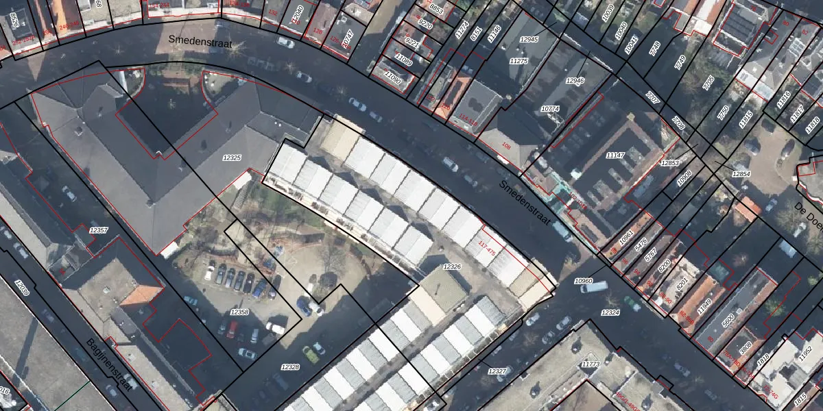 Het perceel waarop Smedenstraat 261 staat heeft een oppervlakte van 1870 m². Dit is een zeer groot perceel. De perceeloppervlakte wordt geregistreerd door het Kadaster. Gedetailleerde informatie over de maten van dit perceel kunt u vinden in het rapport Kadastrale kaart met maatvoering van Smedenstraat 261.