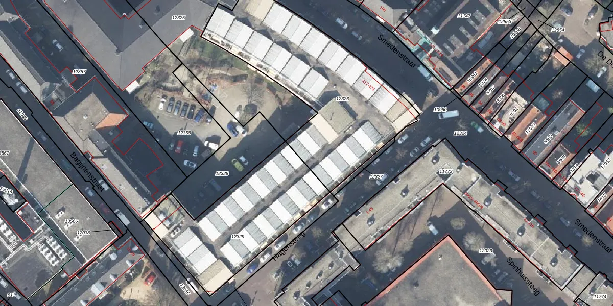 Het perceel waarop Smedenstraat 307 staat heeft een oppervlakte van 1870 m². Dit is een zeer groot perceel. De perceeloppervlakte wordt geregistreerd door het Kadaster. Gedetailleerde informatie over de maten van dit perceel kunt u vinden in het rapport Kadastrale kaart met maatvoering van Smedenstraat 307.