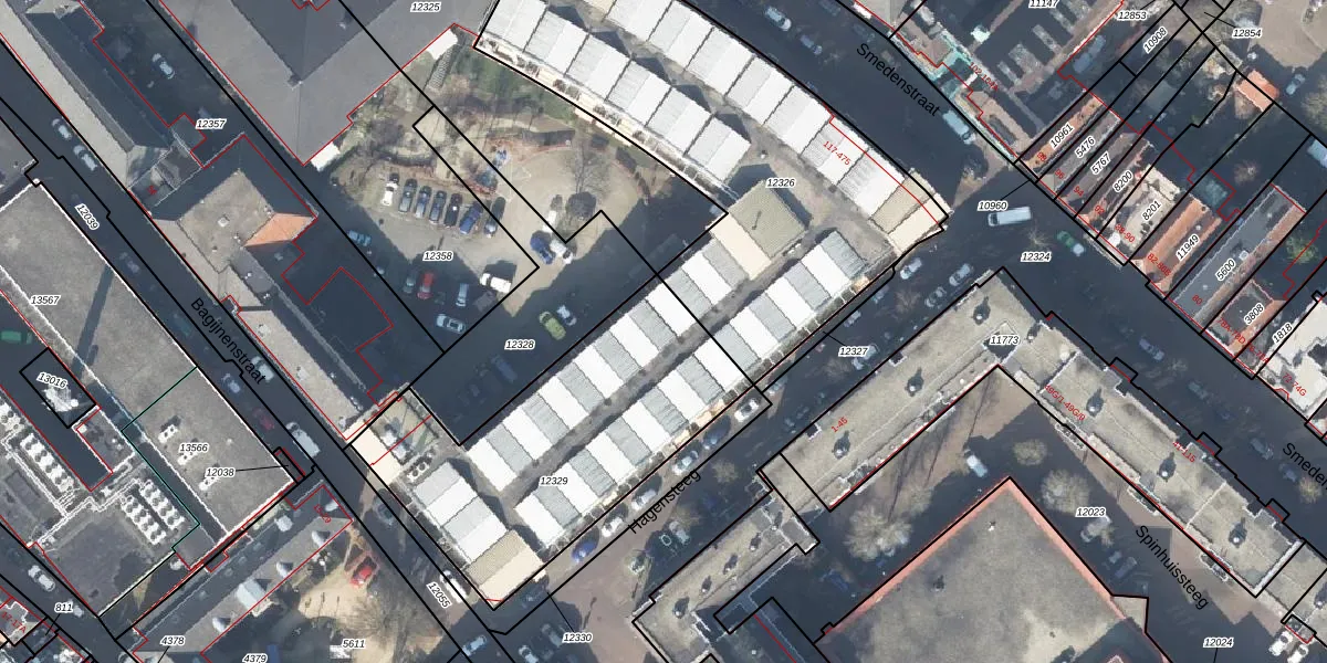 Het perceel waarop Smedenstraat 311 staat heeft een oppervlakte van 1325 m². Dit is een zeer groot perceel. De perceeloppervlakte wordt geregistreerd door het Kadaster. Gedetailleerde informatie over de maten van dit perceel kunt u vinden in het rapport Kadastrale kaart met maatvoering van Smedenstraat 311.