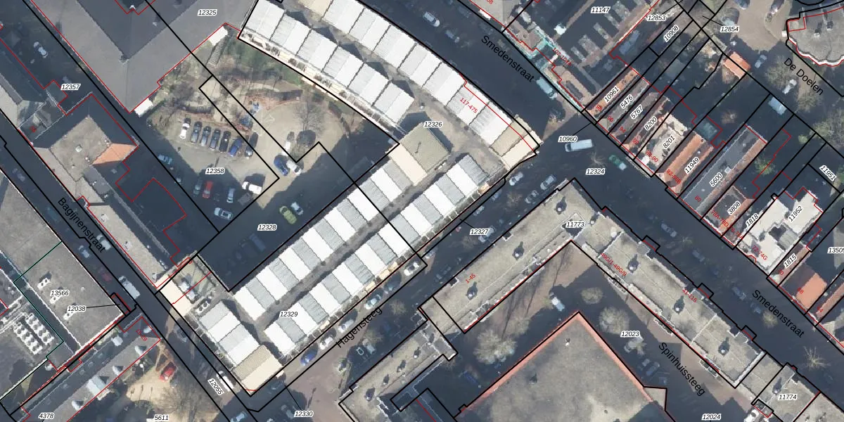 Het perceel waarop Smedenstraat 405 staat heeft een oppervlakte van 1870 m². Dit is een zeer groot perceel. De perceeloppervlakte wordt geregistreerd door het Kadaster. Gedetailleerde informatie over de maten van dit perceel kunt u vinden in het rapport Kadastrale kaart met maatvoering van Smedenstraat 405.