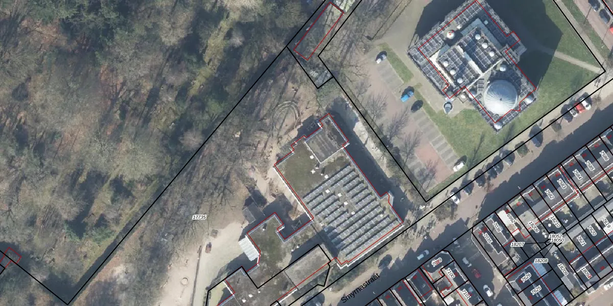 Het perceel waarop Smyrnastraat 1-B staat heeft een oppervlakte van 1,9 ha. Dit is een zeer groot perceel. De perceeloppervlakte wordt geregistreerd door het Kadaster. Gedetailleerde informatie over de maten van dit perceel kunt u vinden in het rapport Kadastrale kaart met maatvoering van Smyrnastraat 1-B.