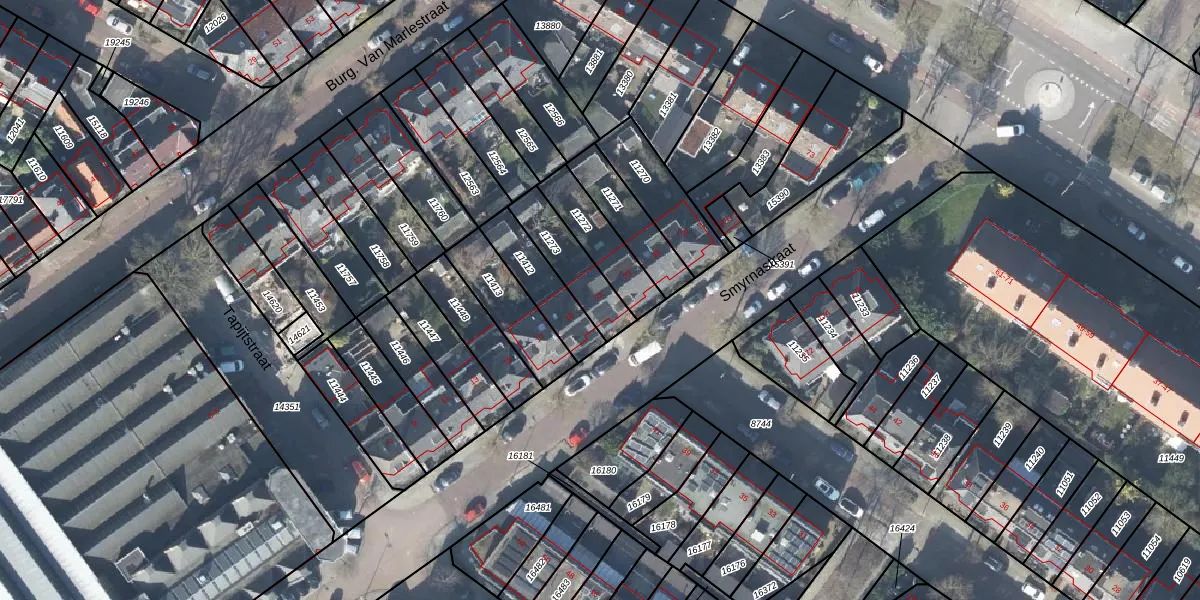 Gebruik de zoekbalk of klik op een perceel voor informatie over de adressen binnen dit perceel.