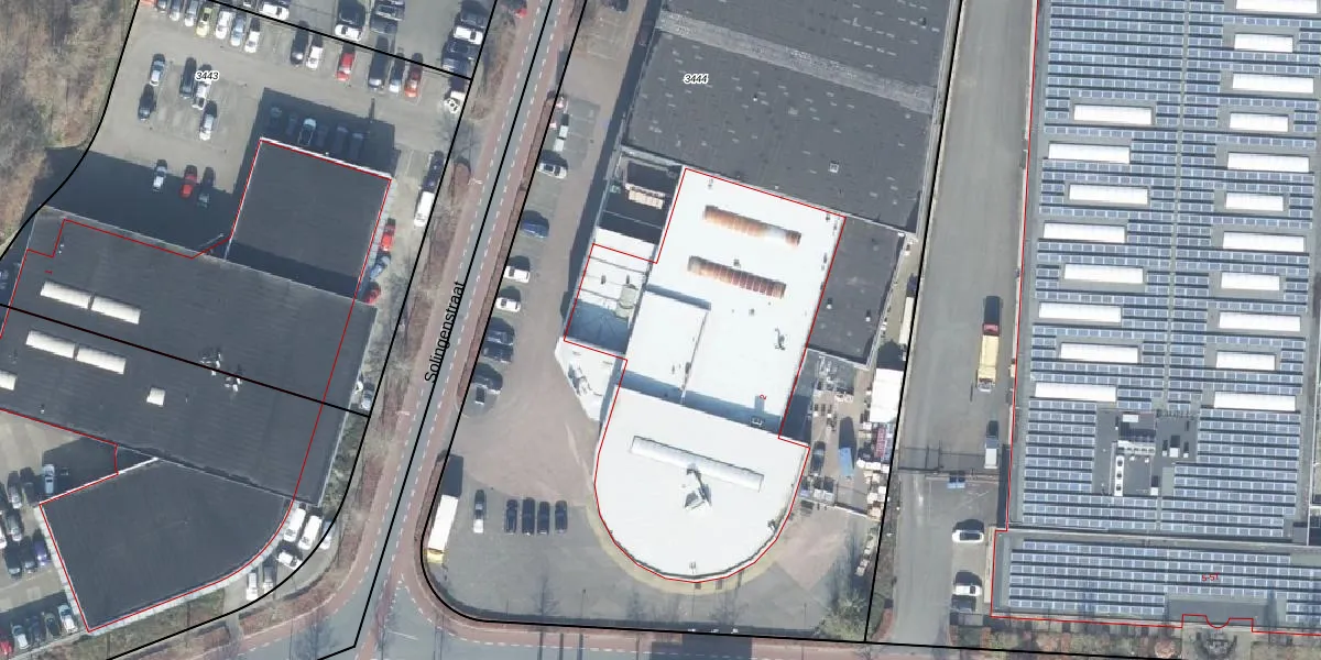Het perceel waarop Solingenstraat 2 staat heeft een oppervlakte van 6794 m². Dit is een zeer groot perceel. De perceeloppervlakte wordt geregistreerd door het Kadaster. Gedetailleerde informatie over de maten van dit perceel kunt u vinden in het rapport Kadastrale kaart met maatvoering van Solingenstraat 2.