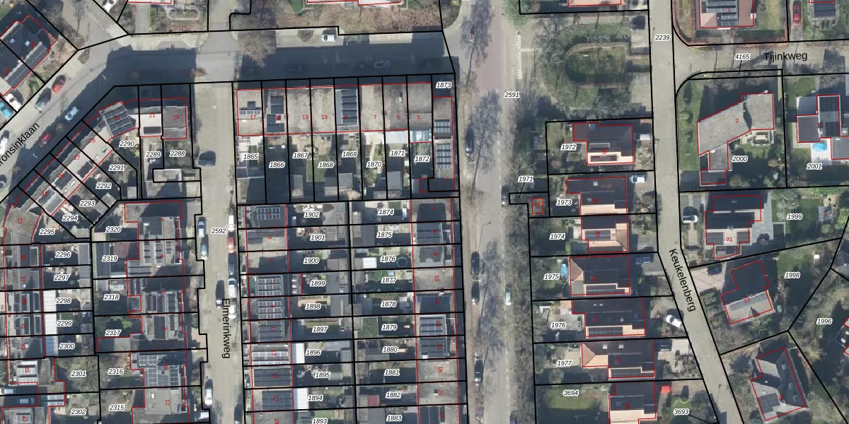 Gebruik de zoekbalk of klik op een perceel voor informatie over de adressen binnen dit perceel.