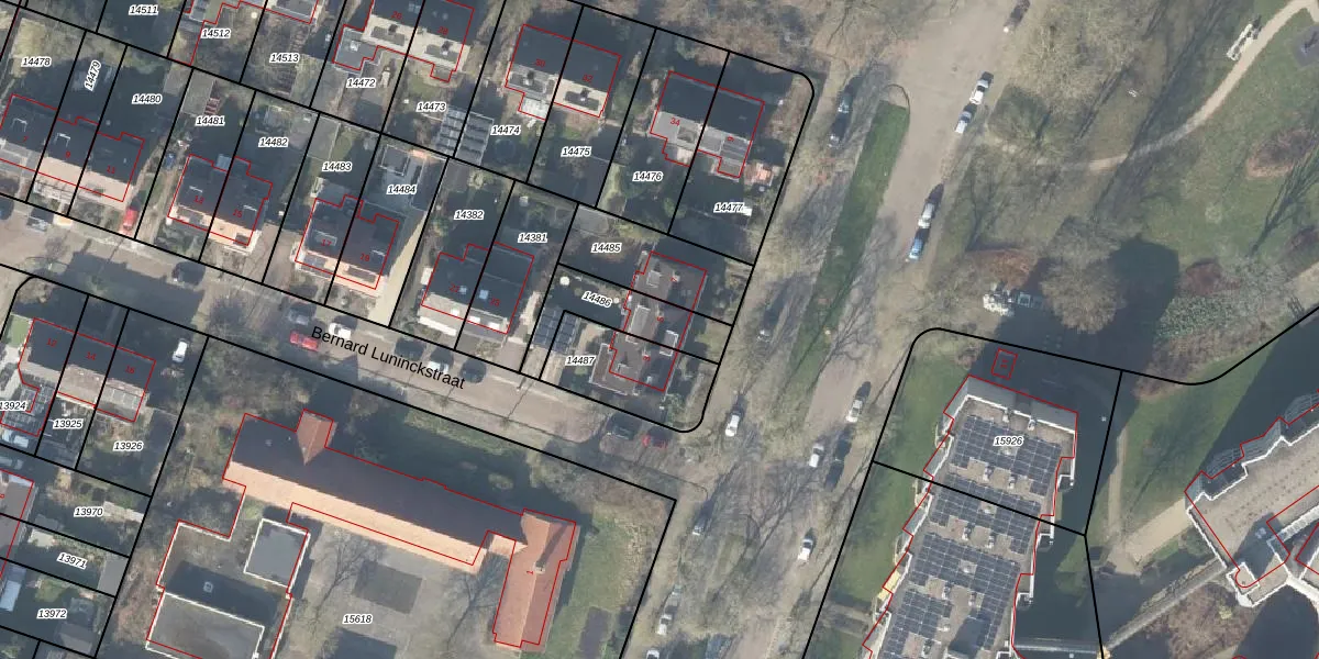Gebruik de zoekbalk of klik op een perceel voor informatie over de adressen binnen dit perceel.