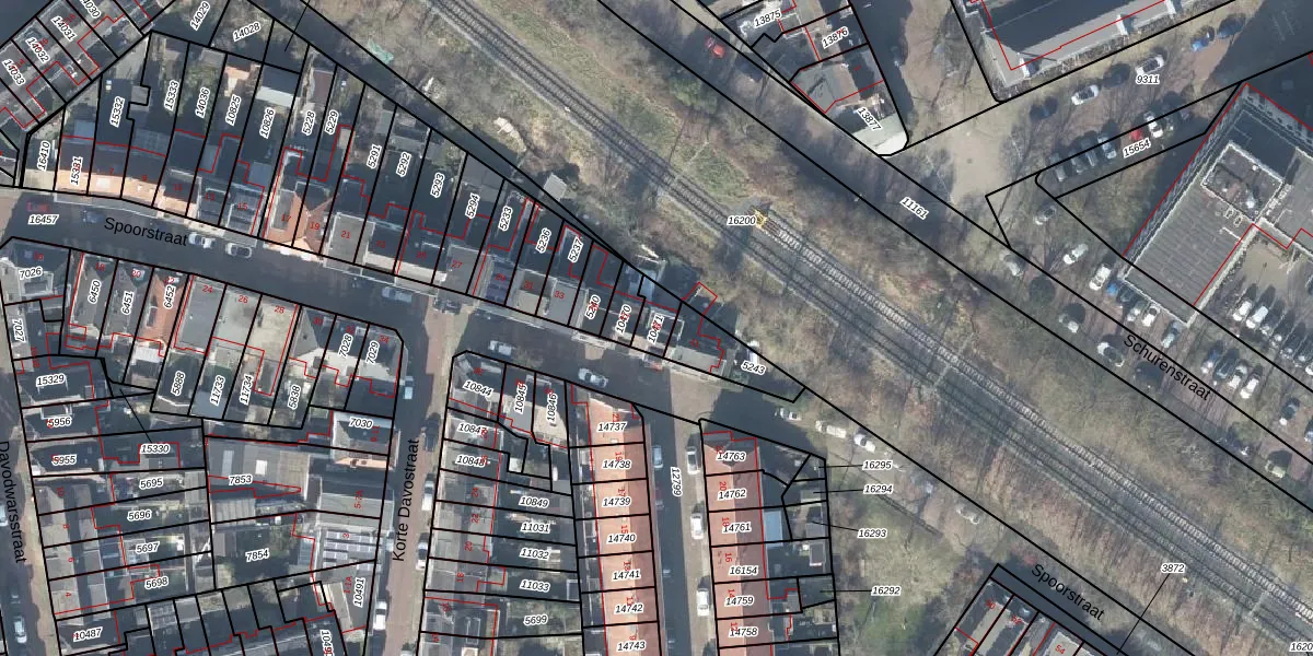 Het perceel waarop Spoorstraat 39 staat heeft een oppervlakte van 54 m². Dit is een klein perceel. De perceeloppervlakte wordt geregistreerd door het Kadaster. Gedetailleerde informatie over de maten van dit perceel kunt u vinden in het rapport Kadastrale kaart met maatvoering van Spoorstraat 39.