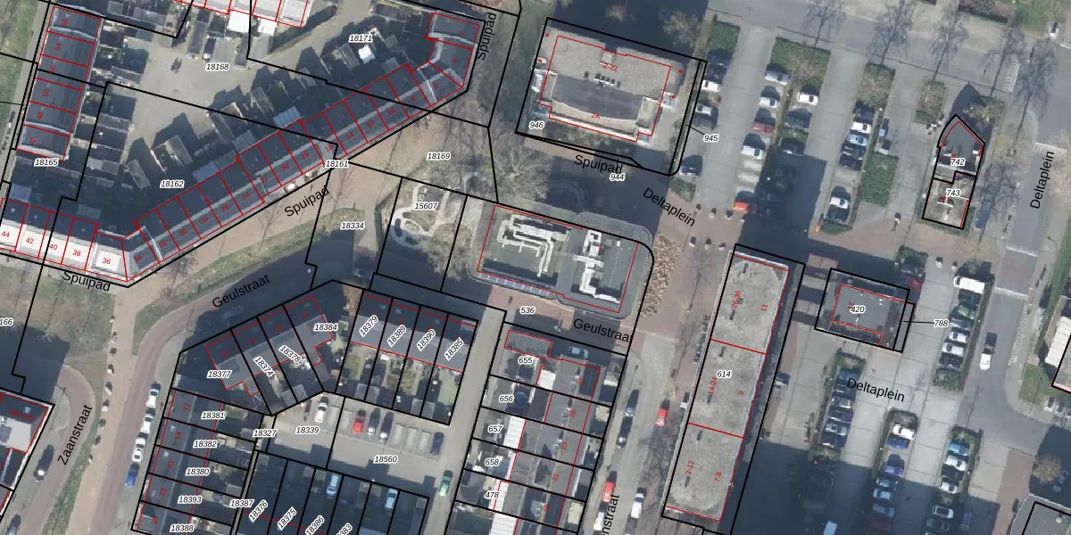 Het perceel waarop Spuipad 1 staat heeft een oppervlakte van 739 m². Dit is een groot perceel. De perceeloppervlakte wordt geregistreerd door het Kadaster. Gedetailleerde informatie over de maten van dit perceel kunt u vinden in het rapport Kadastrale kaart met maatvoering van Spuipad 1.