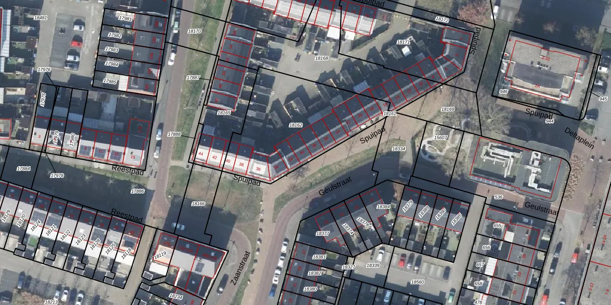 Het perceel waarop Spuipad 30 staat heeft een oppervlakte van 1150 m². Dit is een zeer groot perceel. De perceeloppervlakte wordt geregistreerd door het Kadaster. Gedetailleerde informatie over de maten van dit perceel kunt u vinden in het rapport Kadastrale kaart met maatvoering van Spuipad 30.
