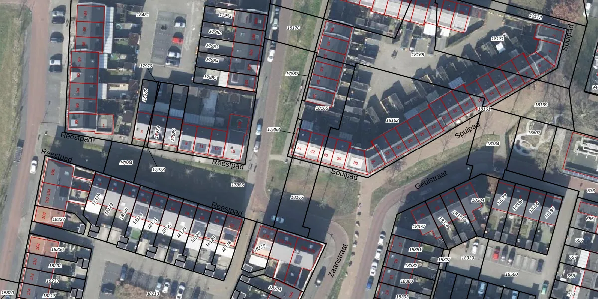 Het perceel waarop Spuipad 44 staat heeft een oppervlakte van 425 m². Dit is een groot perceel. De perceeloppervlakte wordt geregistreerd door het Kadaster. Gedetailleerde informatie over de maten van dit perceel kunt u vinden in het rapport Kadastrale kaart met maatvoering van Spuipad 44.