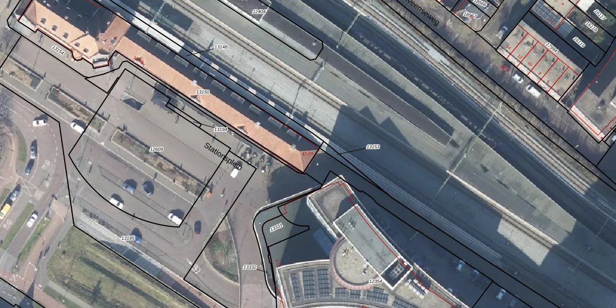 Het perceel waarop Stationsplein 1-T staat heeft een oppervlakte van 1392 m². Dit is een zeer groot perceel. De perceeloppervlakte wordt geregistreerd door het Kadaster. Gedetailleerde informatie over de maten van dit perceel kunt u vinden in het rapport Kadastrale kaart met maatvoering van Stationsplein 1-T.