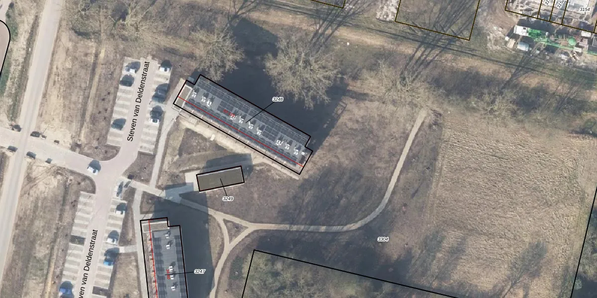 Steven van Deldenstraat 102 is gelegen op kadastraal perceel DPV00B3248. Deze kadastrale aanduiding is uniek en wordt gebruikt door het Kadaster om eigendomsrechten en andere zakelijke rechten vast te leggen. Het perceel maakt onderdeel uit van de kadastrale gemeente Diepenveen.