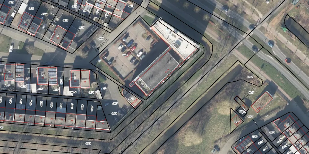 Het perceel waarop Stevinhof 58 staat heeft een oppervlakte van 1998 m². Dit is een zeer groot perceel. De perceeloppervlakte wordt geregistreerd door het Kadaster. Gedetailleerde informatie over de maten van dit perceel kunt u vinden in het rapport Kadastrale kaart met maatvoering van Stevinhof 58.