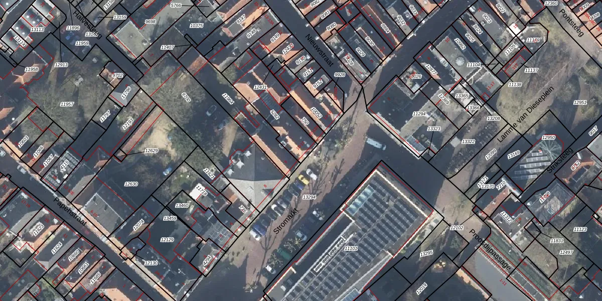 Het perceel waarop Stromarkt 10 staat heeft een oppervlakte van 397 m². Dit is een groot perceel. De perceeloppervlakte wordt geregistreerd door het Kadaster. Gedetailleerde informatie over de maten van dit perceel kunt u vinden in het rapport Kadastrale kaart met maatvoering van Stromarkt 10.