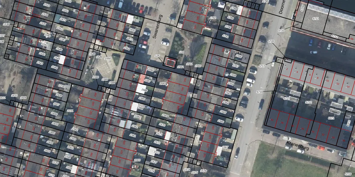 Het perceel waarop Swanenburg 104 staat heeft een oppervlakte van 484 m². Dit is een groot perceel. De perceeloppervlakte wordt geregistreerd door het Kadaster. Gedetailleerde informatie over de maten van dit perceel kunt u vinden in het rapport Kadastrale kaart met maatvoering van Swanenburg 104.