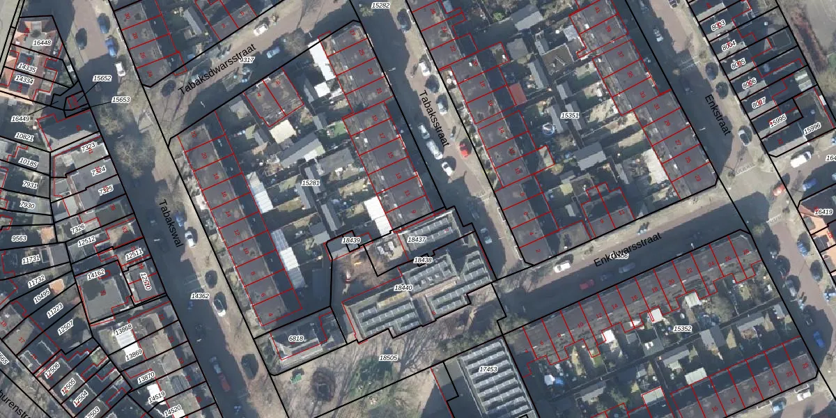Het perceel waarop Tabaksstraat 9 staat heeft een oppervlakte van 2705 m². Dit is een zeer groot perceel. De perceeloppervlakte wordt geregistreerd door het Kadaster. Gedetailleerde informatie over de maten van dit perceel kunt u vinden in het rapport Kadastrale kaart met maatvoering van Tabaksstraat 9.