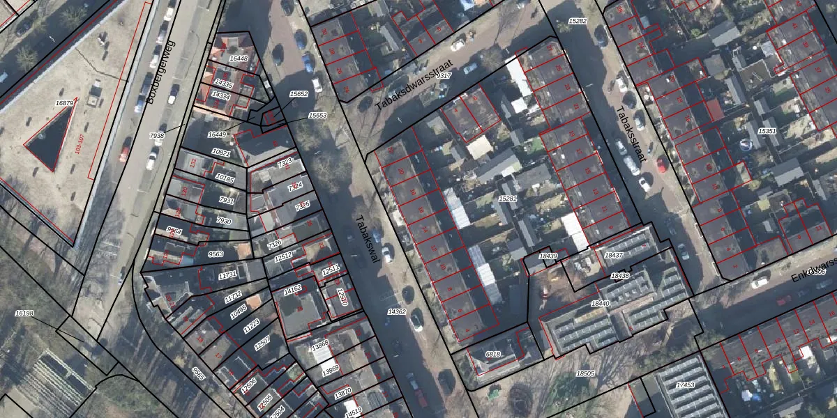 Het perceel waarop Tabakswal 16 staat heeft een oppervlakte van 2705 m². Dit is een zeer groot perceel. De perceeloppervlakte wordt geregistreerd door het Kadaster. Gedetailleerde informatie over de maten van dit perceel kunt u vinden in het rapport Kadastrale kaart met maatvoering van Tabakswal 16.