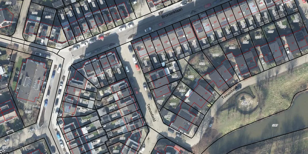 Het perceel waarop Teeuwbeld 1 staat heeft een oppervlakte van 152 m². Dit is een middelgroot perceel. De perceeloppervlakte wordt geregistreerd door het Kadaster. Gedetailleerde informatie over de maten van dit perceel kunt u vinden in het rapport Kadastrale kaart met maatvoering van Teeuwbeld 1.