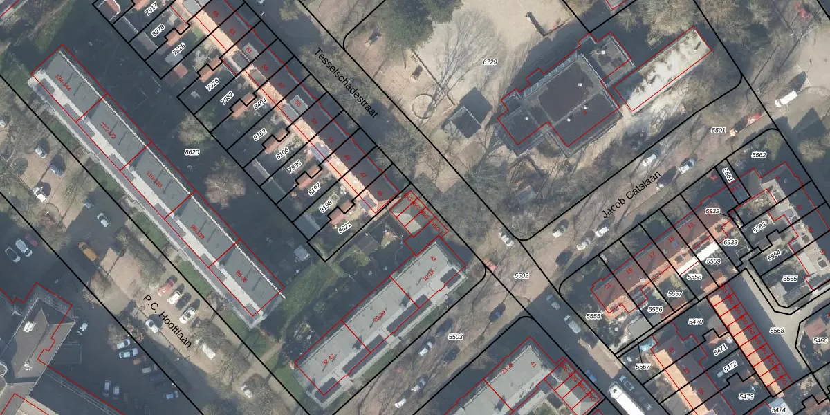 Het perceel waarop Tesselschadestraat 45-G-3 staat heeft een oppervlakte van 5752 m². Dit is een zeer groot perceel. De perceeloppervlakte wordt geregistreerd door het Kadaster. Gedetailleerde informatie over de maten van dit perceel kunt u vinden in het rapport Kadastrale kaart met maatvoering van Tesselschadestraat 45-G-3.