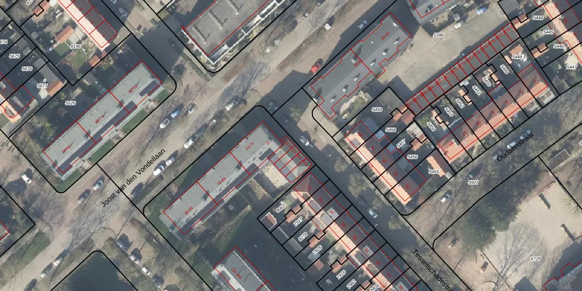 Het perceel waarop Tesselschadestraat 71-G-4 staat heeft een oppervlakte van 5752 m². Dit is een zeer groot perceel. De perceeloppervlakte wordt geregistreerd door het Kadaster. Gedetailleerde informatie over de maten van dit perceel kunt u vinden in het rapport Kadastrale kaart met maatvoering van Tesselschadestraat 71-G-4.